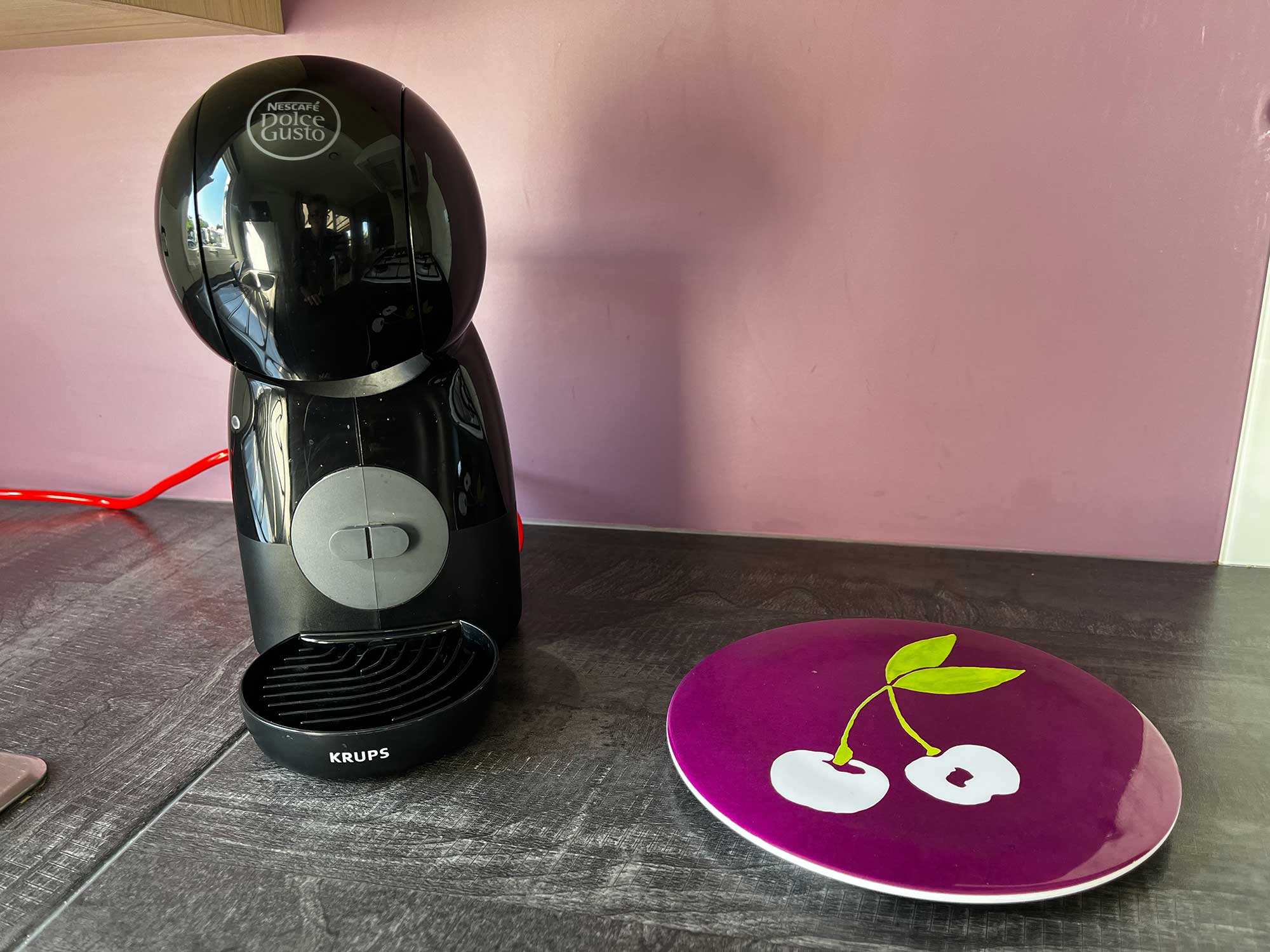- a kitchen equipped with microwave, DOLCE GUSTO coffee maker, large fridge/freezer, gas hob, complete crockery