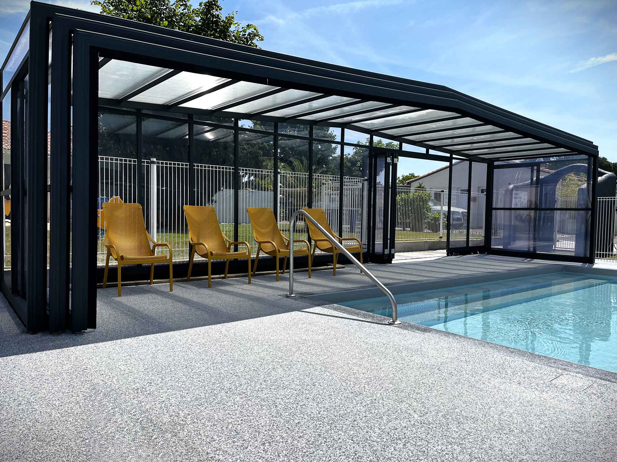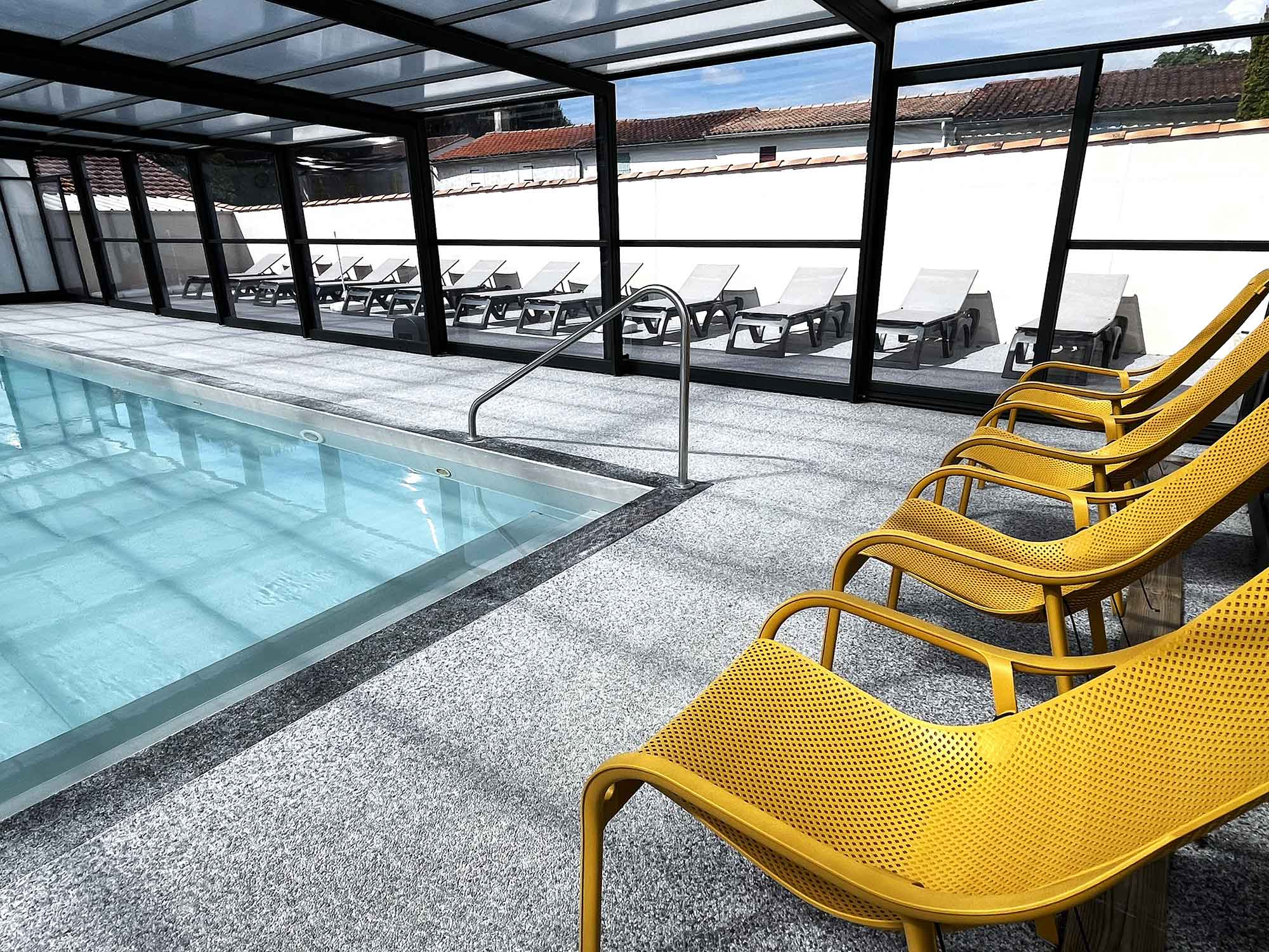 An access gate and a descent ramp have been specially created for wheelchair access around the swimming pool.